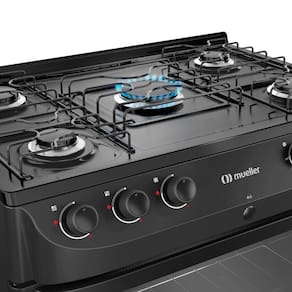 Tem ainda acendimento automático total, para acendimento prático dos queimadores da mesa e do forno.