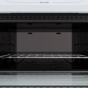 Tipo do Fogão: A Gás, de Piso | Altura (cm): 87cm | Largura (cm): 75cm | Peso (Kg): 27,55Kg | Cor: Branco | Marca: Mueller | Voltagem: Bivolt | Mesa: Em vidro temperado | Prateleiras do forno: Uma grade ajustável em dois níveis de altura | Tipo de acendimento: Acendimento automático total, na mesa e no forno | Porta do Forno: De Vidro