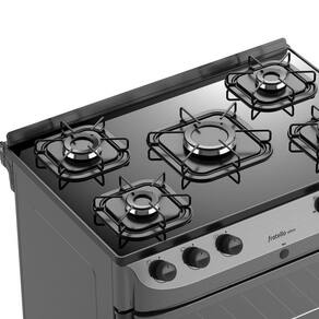 Fratello vetro grafite: Com mesa em vidro temperado o Fratello Vetro é bonito, é eficiente, é moderno. Desenvolvido para trazer mais segurança, praticidade com um toque de modernidade para sua cozinha, tudo que você sempre quis!Características: Tipo de Gás: GLP (Conversível para GN); Acabamento do interior do forno: Total Clean; Capacidade do forno: 81,6 litros; Tipo de acendimento: Acendimento automático total, na mesa e no forno; 01 queimador Ultra Chama: 3700 watts de potência; 02 queimador Família: 2000 watts de potência; 02 queimadores Médios: 1700 watts de potência; Potência do queimador do forno: 2600 watts de potência; Classificação e Eficiência Energética: A na mesa e no forno; Tensão: Bivolt.