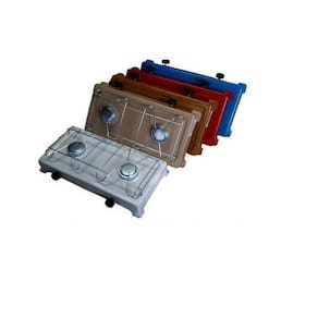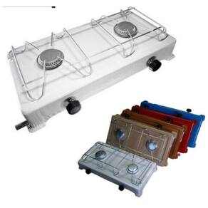 Fogão a Gás Fogareiro 2 bocas para Camping Portátil branco - Para uso com botijão de gás com regulador de baixa pressão. Fácil de usar, limpar e transportar.