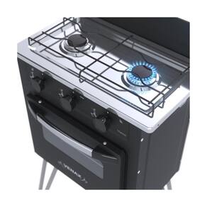O Fogão Portátil 2 Bocas Mini Cook Gas Glp Venax oferece praticidade e eficiencia para cozinhar em espacos reduzidos sem abrir mão da qualidade. Alem de ser fácil de ser transportado, sua principal vantagem é que possui um forno de 22 litros que garante mais comodidade porque não ocupa muito espaco e seu revestimento ser easy clean garante mais facilidade em sua limpeza.