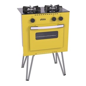 Fogão portátil com 2 queimadores médios, ideal para uso em acampamentos e pequenas cozinhas. Possui mesa de vidro, trempes esmaltadas e forno com revestimento Easy Clean.Tipo
