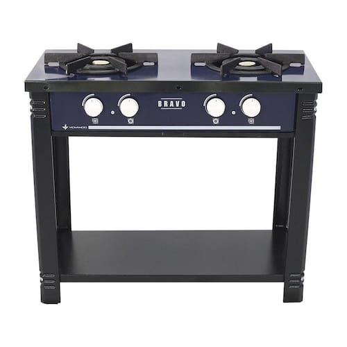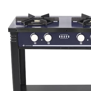 O Fogão Industrial Bravo Azul conta com 2 bocas e mesa esmaltada a fogo com sistema Easy Clean, facilitando a limpeza. Conta com sistema de gás GLP de baixa pressão e queimadores de alto rendimento fabricados em ferro fundido, possuindo potência de 3.636 kcal/h e consumo de gás de 0,662kg/h