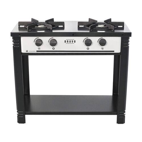 O Fogão Industrial Bravo conta com 2 bocas e mesa esmaltada a fogo com sistema Easy Clean, facilitando a limpeza. Conta com sistema de gás GLP de baixa pressão e queimadores de alto rendimento fabricados em ferro fundido, possuindo potência de 3.636 kcal/h e consumo de gás de 0,662kg/h