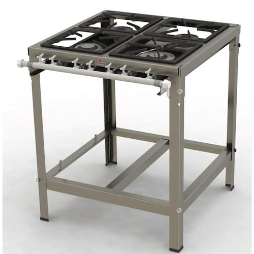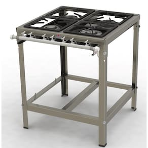 - Queimadores: 2 queimadores duplos 16 cm e 2 queimadores simples de chama dupla 12 cm