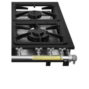 Este fogão 4 bocas a gás é produzido em aço carbono (chapa 20) com pintura epóxi, garantindo mais resistência ao produto. Possui 4 grelhas 30x30 confeccionadas em ferro fundido e 4 queimadores, sendo 2 duplos e 2 simples, além de uma bandeja coletora de resíduos em cada queimador, para maior higiene e durabilidade do fogão industrial.