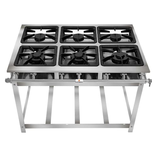 O Fogão Serv Kenok 6 Bocas 3 Duplas Baixa Pressão FBSE6B.841 é um equipamento de alta qualidade, perfeito para cozinhas de grande ou pequeno porte, atendendo eventos e também a cozinha da sua casa. Sua estrutura é confeccionada em aço inox, com queimadores e grelhas em ferro fundido. As grelhas possuem um design diferenciado com pontas hexagonais (6 pontas), permitindo o uso de panelas grandes ou pequenas. O fogão tem 3 bocas simples e 3 bocas duplas, que atendem às demandas das cozinhas profissionais e apaixonadas pela alta gastronomia. Além disso, acompanha bandejas coletoras em aço carbono galvanizado.