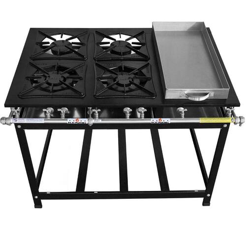 Este fogão 4 bocas a gás é confeccionado em aço carbono chapa 20 com pintura epóxi, garantindo muito mais qualidade e durabilidade ao produto. Sua grelha 40x40 é feita em ferro fundido, proporcionando máxima resistência, além de possibilitar o uso de recipientes a partir de 110 mm. Conta com 4 queimadores, sendo 2 simples e 2 duplos e uma bandeja coletora de resíduos em cada queimador, para melhor utilização e higiene do fogão 4 bocas.