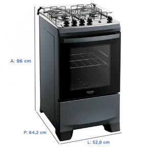 Possui Sistema Corta/Bloqueia Gás para garantir a sua segurança. Eficiência energética: A para consumir menos energia e garantir o seu desempenho. Ele chegou com o seu Acabamento Limpa Fácil e Botões Removíveis para garantir a sua limpeza ao máximo. Você que gosta de utilizar o forno, ele garante um desempenho e segurança a mais, garantindo com 1 grade deslizante para o forno, tem uma capacidade de 60 litros para você ter mais organização e, para finalizar, contém um vidro duplo para aumentar a sua segurança.