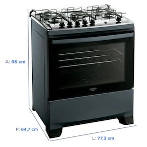Limpa fácil: Para completar, o forno possui acabamento Limpa Fácil, que reduz o acúmulo de sujeira e facilita a manutenção do dia a dia. O sistema de segurança corta gás entra em ação automaticamente em caso de vazamento, garantindo tranquilidade durante o uso. O puxador do forno, em alumínio escovado, combina ergonomia e elegância, reforçando o cuidado com cada detalhe do design.