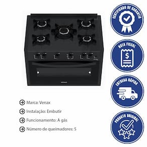 - Eleve sua cozinha com o Fogão de Embutir Venax Picasso Line 5 Bocas!
