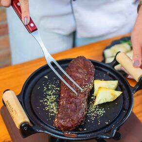 Onde usar a Chapa: Pode ser utilizado em fogões a gás, a lenha, elétricos, cooktops de indução e vitro-cerâmicos. A alça de madeira não permite que o produto seja levado ao forno, churrasqueira ou fogo de chão.