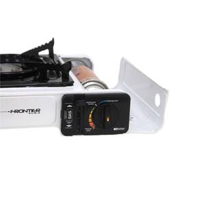 Fogareiro Frontier fácil, prático e seguro; Dispensa uso de fosforo devido ao sistema piezo de ignição; Em aço esmaltado; Uma boca; Econômico; Fácil limpeza; Possui uma maleta para transporte.