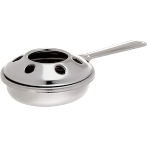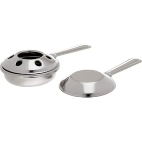 O Fogareiro da linha Plátanos é um produto 100% Aço Inox e vem com abafador. Resistente e fácil de limpar, o fogareiro é o complemento ideal para o seu conjunto para fondue. O fogareiro é composto de uma base para colocação do álcool gel, uma superfície com tampa para encaixe da base com seis aberturas menores e uma tampa abafadora. Saboreie seu fondue, para a degustação de chocolates e queijos derretidos, ideal para momentos marcantes.