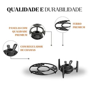 Diferenciais: Acompanha regulador de chamas e aparador em ferro fundido
