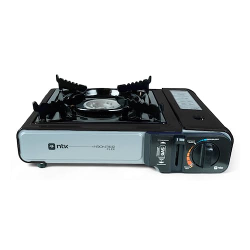 - Marca/Modelo: NTK – Frontier - Cor: Preto - Material: Aço esmaltado com enamel atóxico; - Acendimento: Automático (ignição eletrônica); - Combustível: Cartucho de gás tipo MSF-1a - Sistema de segurança: Corte automático de gás; - Acessórios inclusos: Maleta rígida para transporte;