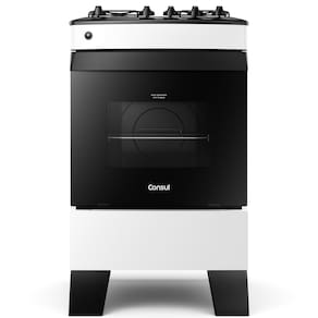 O novo fogão 4 bocas branco Consul combina praticidade e design. A mesa esmaltada é fácil de limpar e ajuda a evitar riscos, mantendo o produto com aparência de novo por mais tempo. Com forno de 58L – o maior do segmento¹ – você tem mais espaço para preparar receitas, além de ter chamas bem distribuídas que garantem assados mais uniformes. As grades são até 3x mais resistentes², e oferecem mais firmeza mesmo com panelas pesadas. Os pés elevados facilitam a limpeza do chão, sem precisar mover o fogão.