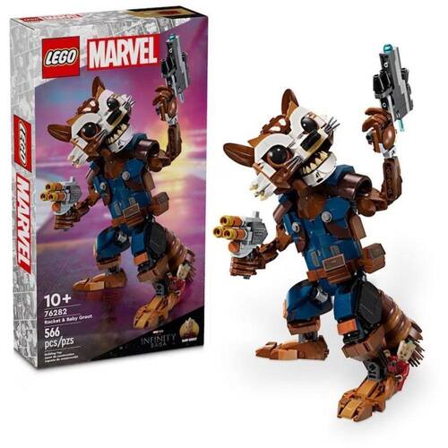 Foguete e Bebê Groot - Lego 76282 Figura de ação Rocket grande para crianças a partir de 10 anos Inclui um atirador de mola, um blaster e uma minifigura do Baby Groot O brinquedo Rocket para construir é totalmente articulado para inspirar ação dinâmica Esta figura divertida de construir oferece brincadeiras e exibições infinitas possibilidades Uma ideia de presente de super-herói para os fãs dos Guardiões da Galáxia da Marvel Studios com mais de 10 anos As crianças podem ampliar e girar conjuntos em 3D usando o aplicativo intuitivo LEGO Builder Veja a linha completa LEGO Marvel para mais brinquedos montáveis de super-heróis para crianças O modelo articulado e montável de 566 peças tem mais de 22 cm de altura. Homologação Inmetro: CE-BRI/IQB 006107 54704/21-001