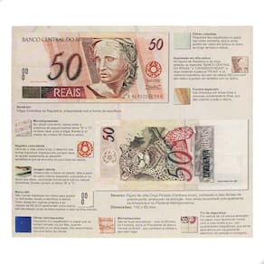 Folder Encarte para Cédula de 50 Reais DescritivoO Folder Encarte para Cédula de 50 Reais Descritivo descreve com detalhes os vários elementos que compõem a cédula de 50 reais da primeira família, além de apresentar as cores reais dessa cédula.No folder são apontados os elementos de impressão em alto-relevo, fibras coloridas, fundos especiais, microimpressões, microchancelas, imagem latente, marca tátil, registro coincidente, fibras luminescentes, fio de segurança, numeração, dimensões, listagem com informações de chancelas entre 1994 a 2009 e descrição do anverso e reverso.O folder tem espaço reservado para colocar 1 (um) cédula de 50 reais da 1ª Família em 1 (um) espaço plástico que é localizada na parte interna do material; a abertura do plástico é feita pela lateral esquerda dele. Para colocar sua cédula você deve abrir o plástico pelo lado citado e inserir a cédula com cuidado.CARACTERÍSTICAS DO FOLDERComprimento: 19,7cmLargura folder fechado: 22,5cmEspaço para 1 cédula de 50 reais da 1ª FamíliaNÃO ACOMPANHA CÉDULA Marca: Numismática Completei