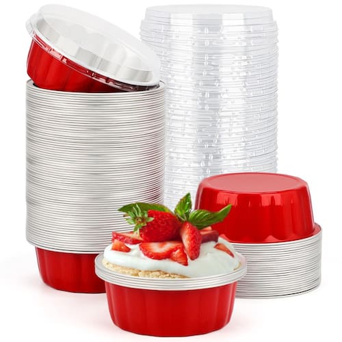 Beasea Pacote com 100 copos descartáveis de 227 g com tampas - ?Tamanho perfeito?Capacidade de 235 ml, comprimento superior de 11 cm com tampa, comprimento inferior de 9 cm, altura de 5 cm com tampa, tamanho perfeito para oferecer diferentes tipos de sobremesas para uma única porção. Cada copo vem com tampa, e existem várias opções de cores, oferecendo mais opções para você. - ?Material premium?Feito de material de folha de alumínio resistente e agradável de qualidade premium, condução de calor mais rápida, mais leve e amigável ao padeiro. - ?Uso conveniente?Com o material de folha de alumínio de boa qualidade projetado para padaria, você pode colocar o copo diretamente no fogo para usar (mas não coloque os copos vazios no fogo), com condução de calor mais rápida para usar menos energia. 227 g para cada panela com tampa, é uma boa maneira de servir porções individuais para convidados na reunião. - ?Multifunção?1 copo de alumínio com 2 aplicações, é um molde de cozimento e também uma bela embalagem, não precisa desmoldar e muito conveniente para servir. - ?Todas as ocasiões?Os copos de alumínio Beasea são adequados para a maioria dos tipos de ocasiões, brownies, muffins, torta de maçã, pudins, cupcakes, bolos de queijo, etc. Com uma capacidade adequada, estes copos fofos têm um bom tamanho para uma única porção de sobremesas para diferentes eventos, festas para trazer felicidade a todos.