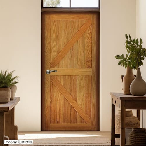 A JOMADI apresenta a porta modelo Celeiro, produzida em madeira maciça Angelim Pedra, reconhecida por sua alta durabilidade, resistência e excelente acabamento natural. Seu design rústico com travessas diagonais em “Z” valoriza ambientes com estilo campestre, industrial ou moderno-rústico, sendo ideal para uso interno ou externo, especialmente em cozinhas, lavabos, despensas ou como porta de correr tipo celeiro. Além da estética marcante, o Angelim Pedra é uma madeira de alta densidade, que oferece excelente resistência ao empenamento, aos impactos e às variações climáticas, garantindo longevidade ao produto mesmo em locais com variação de umidade. A estrutura reforçada com travessas horizontais e diagonais proporciona estabilidade adicional, evitando deformações com o tempo.