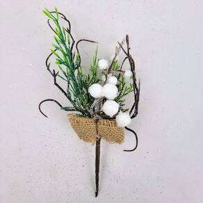 Folhagem de natal pick branco com laço 23x12x4cm Vem decorar, seja inigual