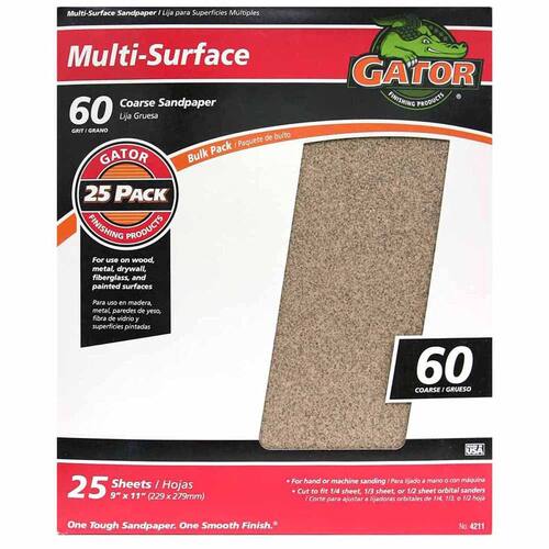 Gator Folhas de lixa multisuperfícies de 23 x 28 cm, gramatura 60, pacote com 25