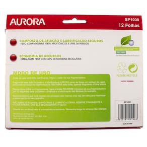 Folhas Limpadoras e Lubrificadoras para Fragmentadoras Aurora SP1000. Pacote com 12 unidades. Compatível com qualquer modelo de Fragmentadora do Mercado. Fácil uso, sem sujeira, sem vazamento. Usar uma vez por mês para maximizar o desempenho de sua fragmentadora e prolongar seu tempo de vida útil. Especificações: - Compatível com todas as fragmentadoras; - Afia as lâminas da fragmentadora e impede a formação de ferrugens; - Feita com materiais naturais; - Fácil de usar, sem sujeira e vazamentos, a folha previne a ferrugem, mantém o corte das lâminas, reduz ruído e poeira do papel; - NÃO ABRA a folha, apenas fragmente; - Validade : Indeterminada. Produto atóxico. Ean: 6925781452463