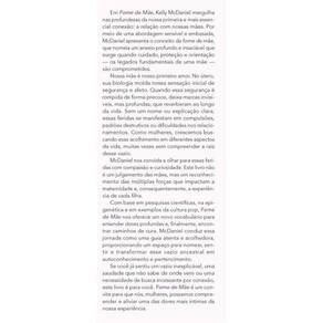 Aclamado nos Estados Unidos por seu olhar transformador sobre os efeitos de uma maternidade emocionalmente ausente, Fome de Mãe chega ao Brasil como um livro essencial para profissionais da área de saúde mental, leitoras em busca de autoconhecimento e todas as pessoas interessadas em entender as raízes emocionais de padrões comportamentais repetitivos. Em Fome de Mãe , a terapeuta Kelly McDaniel lança luz sobre um sofrimento profundo e silencioso vivido por muitas mulheres: a ausência de vínculo emocional com a mãe na infância. Com base em décadas de prática clínica, McDaniel batiza essa ferida de “fome de mãe” — uma carência que pode afetar autoestima, relacionamentos e padrões de comportamento na vida adulta. Com linguagem acessível e empática, o livro oferece não apenas entendimento, mas também caminhos concretos de cura. É leitura essencial para quem busca autoconhecimento e para profissionais da saúde mental e emocional que desejam aprofundar sua escuta sobre os impactos de vínculos maternos frágeis. Fome de Mãe é um convite à reconexão consigo mesma e à libertação de ciclos repetitivos de dores emocionais.