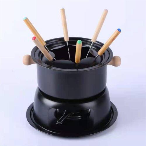A panela de Fondue linha Lucerna da FERIMTE prepara os mais diversos tipos de fondue para até 6 pessoas. A charmosa panela de fondue FERIMTE é feita de aço, assim como a base e o queimador a álcool gel. Resistente , bonita e durável, ela tem a capacidade de 1,5L. Os 6 garfos, que são de madeira e tem cabos coloridos, vão ajudar os convidados aa identificar o seu respectivo talher.