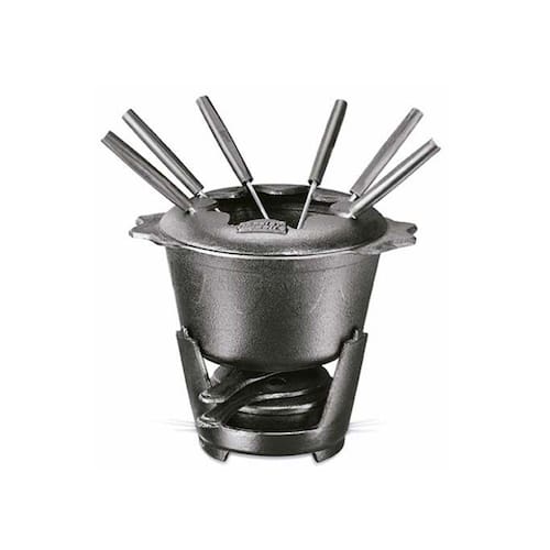 Fondue de ferro fundido com capacidade de 1.2 litros, panela com 16cm de diâmetro e 10cm de altura, fogareiro com 9.5cm de altura. Acompanha 6 espetos de aço com cabo de plástico. Fondue todo em ferro fundido, garante durabilidade imensurável, elegancia saude. Ideal para servir o fondue de chocolate quente, queijo derretido e outros alimentos afins. Sinônimo de tradição e tecnológico desenvolvida com exclusividade pela empresa durante 40 anos de experiência, oferecendo produtos de durabilidade superior, charme e exclusividade, que vão do fogão a mesa com muita personalidade.