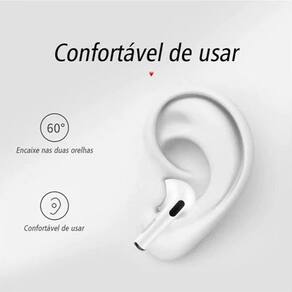 Fone de ouvido Bluetooth na cor branca, perfeito para suas caminhadas, atividades físicas ou para ouvir sua música preferida. O Fone se ajusta bem nos ouvidos e também gera mais liberdade por ser uma alternativa sem fios. A autonomia média é de aproximadamente até 3 horas de duração, mas poderá sofrer alterações dependendo do volume dos áudios e do tipo de utilização do fone.
