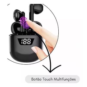 Especificações: Versão Bluetooth 5.0 Frequência de trabalho: 2402-2480 MHz Alcance: 10 metros Independência: 32 +- 5% Trabalho do drive: 010mm Sensibilidade 106dB +/- 3dB Resposta de frequência 20hz a 20khzCapacidade da bateria: 30 mAh Autonomia de reprodução: aproximadamente 4 horas (volume 70%) Autonomia de ligação: aproximadamente 3.5 h (volume 90%) Tempo de carregamento: aproximadamente 1.h Bateria da Case de carregamento: 300mAh Tempo de carregamento da case de carregamento: aproximadamente 1.5h Autonomia em stand-by aproximadamente: 31h Tensão de entrada DC5V 0.5 A