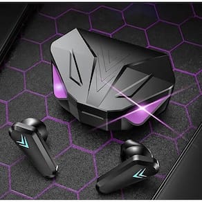 Fone de ouvido bluetooth gamer sem fio com tecnologia bluetooth 5.3, modo de baixa latência para áudio em tempo real, microfone embutido de alta definição, design moderno com luzes LED e case com recarga portátil.Tipo