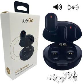 Modelo: GT-T02 PRO Cor: Preto Peso: 0,78g fone / 4,2g x2 fones / 35g base Versão Bluetooth: 5.1 Alto-falante: 10mm Entrada: DC 5V/0,2mAH Bateria: 40mAh x2 fones / 300mAh base Tempo de uso: 5 horas Fone de Ouvido Bluetooth Sem Fio Smart Touch GT-T02 PRO