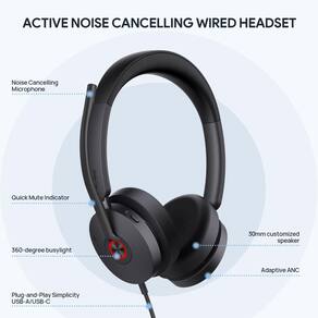 — Chamadas cristalinas com microfone com cancelamento de ruído: equipado com tecnologia ENC avançada, o fone de ouvido USB ANC filtra com eficácia o ruído de fundo, como cães latindo, crianças chorando, sons de TV, digitação no teclado, ruído doméstico e ruído do trânsito. Garante que somente sua voz seja ouvida durante as chamadas, tornando-a ideal para trabalho remoto, call centers, Zoom, equipes e atendimento ao cliente.