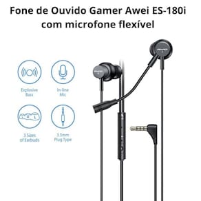 Fone de Ouvido Gamer Awei ES-180i com microfone flexível