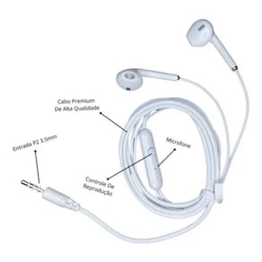 Oferta relâmpago - fone de ouvido com fio e microfone p2Características / especificações:- fabricante: goldenultra- modelo: gt-l10- comprimento do cabo: 120 cm (1,2m)- potência: 10w- impedância: 10ohms a khz- sensibilidade: 1khz = 104 db- resposta de frequência: 12-22 000hz- tipo de conector: p2/p3 (3,5 mm) do tipo 3 vias (áudio l-r e microfone)- botões de controle: play-pause- alto-falantes com tecnologia super bass- design ergonômico- cabo revestido em tpu- materiais: plástico e metais- peso: 16 g- cor: brancoRecomendações:- este produto é compatível com qualquer dispositivo com entrada p2. Exemplo: smartphones; vídeo games e outros.- em alguns modelos de aparelhos que não tenham entrada do tipo p2 é necessário a utilização de adaptador. Vendido separadamente.- para a utilização do microfone em notebooks ou computadores é necessário que a entrada p2 seja do tipo conjugada com microfone.- em alguns modelos de notebooks ou computadores cuja entrada p2 é separada para saída e entrada de áudio é necessário a utilização de adaptador. Vendido separadamente.Itens inclusos:-01 fone de ouvido com microfone