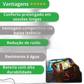 Fone de ouvido gamer bluetooth com áudio premium e design compacto Descrição do anúncio: Experimente a adrenalina de mergulhar na cena de outra maneira com os fones de ouvido específicos para jogos, você não perde nenhum detalhe e ouve o áudio como ele foi pensado pelos criadores. Ideal para gamers, estes fones oferecem baixíssima latência de 50ms, garantindo conectividade excelente e sem atraso. Além disso, são perfeitos para o dia a dia, proporcionando som de altíssima qualidade para músicas e um design inovador com luzes de led no fone e na case de carregamento.