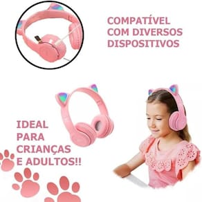 Com leds que acendem as orelhinhas e também as laterais de patinhas pode ser desligado Sem fio bluetooth 5.0 Longa duração bateria Carregamento rápido Dobrável e ajustável Acompanha cabo para carregamento via usb e manual