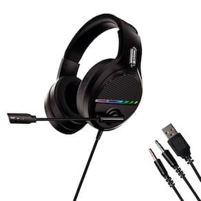 - Com microfone embutido - Ajuste de volume - Arco ajustável - Iluminação RGB - Plug and Play - Tipo: 3,5mm2+USB - Tamanho do cabo: 2 Metros - Diâmetro do microfone: 65mm - Diâmetro do alto-falante: 50mm - Frequência de resposta do alto-falante: 20Hz20KHz - Potência máxima do fone de ouvido: =10mv - Sensibilidade: 110dB3dB - Impedância: 32 - P2 para microfone, outro para o fone e o USB apenas alimentação da energia do RGB Marca: Não Informado