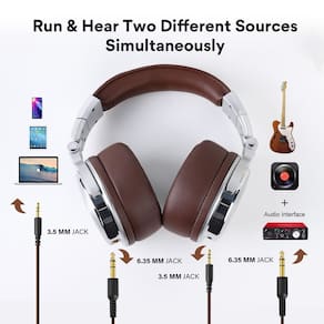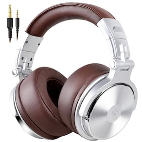 Fone de ouvido Over Ear, fones de ouvido de som estéreo premium com fio e driver de 50 mm, fones de ouvido dobráveis e confortáveis com protetores de ouvido de proteína e Shareport para gravação de podcast e monitoramento de TV para PC - com microfone (prata) - SOM BAIXO: desfrute de graves potentes e conforto com os fones de ouvido OneOdio Studio. Os grandes drivers de unidade de alto-falante de 50 milímetros combinados com ímãs de neodímio oferecem graves dinâmicos, ótimos para DJing, mixagem, monitoramento ou escuta de música. - CONSTRUÍDAS PARA SE MANTEREM CONFORTÁVEIS: as almofadas de ouvido acolchoadas com espuma viscoelástica de couro proteico são projetadas para monitorar o conforto dos fones de ouvido e isolar o ruído. A faixa de cabeça é ajustável e elástica para que você encontre o ângulo desejado em que deseja se encaixar. - NÃO HÁ MAIS ADAPTADOR: O cabo em espiral estilo DJ (9,8 pés esticado) chega facilmente da TV ou do aparelho de som até sua cadeira. Um plugue de 6,35 mm de tamanho padrão e um plugue de 3,5 mm estão incluídos. Ambos são completamente removíveis, você pode conectar o mixer que deseja usar. - MONITORAMENTO DE LADO ÚNICO: fones de ouvido giratórios de 90° para monitoramento de ouvido único a qualquer momento; a faixa de cabeça flexível e autoajustável oferece uma experiência auditiva sem fadiga que pode durar horas para masterização e mixagem. - FUNCIONA COM: Todos os dispositivos têm conector de áudio de 3,5 ou 6,35 mm. PC, notebook, tablet, telefone, AMP, guitarra, teclado, bateria eletrônica.