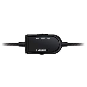 - Possui dois controles de volume em linha para sons separados de bate-papo e jogo.