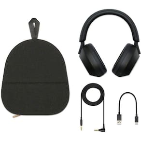 - Modelo: WH-1000XM5/B - Tipo: Over-ear sobre a orelha - Conexão: Bluetooth 5.0 - Alcance de conexão sem fio: 10 metros - Cancelamento de ruído: Ativo Noise Cancelling - Microfones: 5 para cancelamento de ruído e chamadas - Bateria: íon-lítio recarregável até 30 horas de reprodução sem fio com cancelamento de ruído ativo - Tempo de carregamento: aproximadamente 3 horas - Controle de toque na concha do fone de ouvido - Sensor de proximidade para pausar automaticamente a música - Aplicativo Sony Headphones Connect para personalização de som e configurações avançadas - Peso: 254 gramas - Cor: preto - Acompanha estojo de transporte e cabo USB-C para carregamento