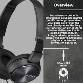 pacote inclui: Sony MDR-ZX310AP ZZFone de ouvido estéreo da série (preto) e capa para fone de ouvido - Controle de reprodução de smartphone: o fone de ouvido estéreo dobrável com fio da série MDR-ZX310AP da Sony oferece controles integrados