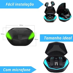 Fones de ouvido in-ear para melhor qualidade de áudio Tamanho compacto e ideal para exercícios e atividades diárias Design inovador com luzes de led no fone e na case Latência ultra baixa de 50ms, ideal para jogos Bluetooth v5.3 para conectividade sem fio Compatível com todos os dispositivos com bluetooth Funções: atendimento a chamadas, bluetooth, microfone, música, anti-suor, controle