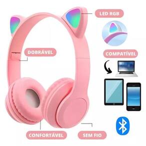 Com leds que acendem as orelhinhas e também as laterais de patinhas pode ser desligado Sem fio bluetooth 5.0 Longa duração bateria Carregamento rápido Dobrável e ajustável Acompanha cabo para carregamento via usb e manual