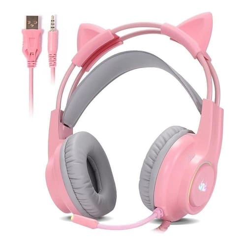 Fone Headset Gamer Led Orelhas Gato Ps4 Xbox Pc Celular Rosa