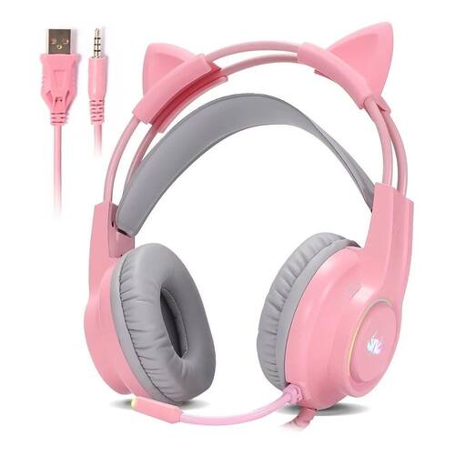 Fone Headset Gamer Led Orelhas Gato Ps4 Xbox Pc Celular Rosa