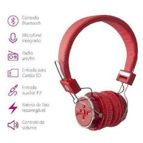 Fone Ouvido Bluetooth Mp3 Radio Estéreo Fm B-05 VermelhoFone Ouvido Bluetooth Mp3 Radio Estéreo Fm B-05 VermelhoFone Resistente e FlexívelIsolamento Acústico Que Melhora A qualidade SonoraPernas Retrateis Para melhor TransportarAjuste Perfeito a Cabeça e OrelhasBluetooth, Micro SD, Radio FM MP3Características PrincipaisFone de ouvido Bluetooth sem fio, Compatível com todos os modelos de aparelhos produto universalMicrofone embutido, a voz Prompt de poder ligar / desligar e emparelhamento, apoiar a discagem por voz para iphone.Aprimorada redução de ruído. Boa opção para ouvir música, ver filmes, falar ao telefone, etc.Informações Técnicas:Modelo: UniversalVersão Bluetooth: 4.1 classe 2Faixa de frequência: 2,4 GHz - 2.48ghzperfil suportados: A2DP e AVRCPFaixa de operação: 10mTempo falando: 2 horas de uso continuoTempo de reprodução de música: 4 horas de uso continuoTensão de funcionamento: 3.3V-3.7vdirija dinâmetro: 40 milímetrosImpedância:32Conector de entrada: 3,5 milímetrosDimensão mic; 4 milímetros20-20KHz resposta de frequência.Itens Inclusos:1- Headphone Bluetooth1- Cabo USB